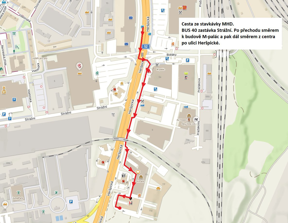 Kudy se k nám dostanete autem nebo MHD (z centra), najdete ve fotogalerii.